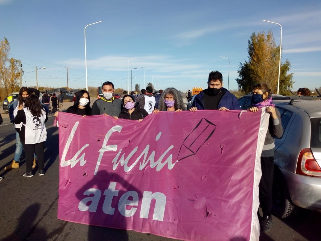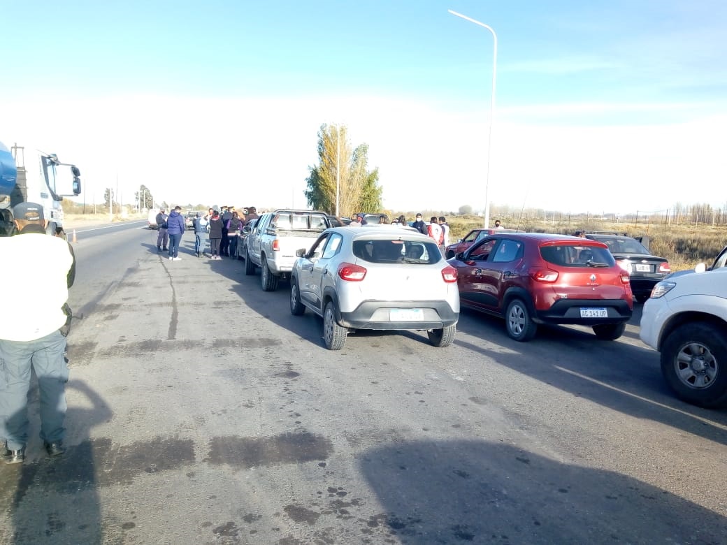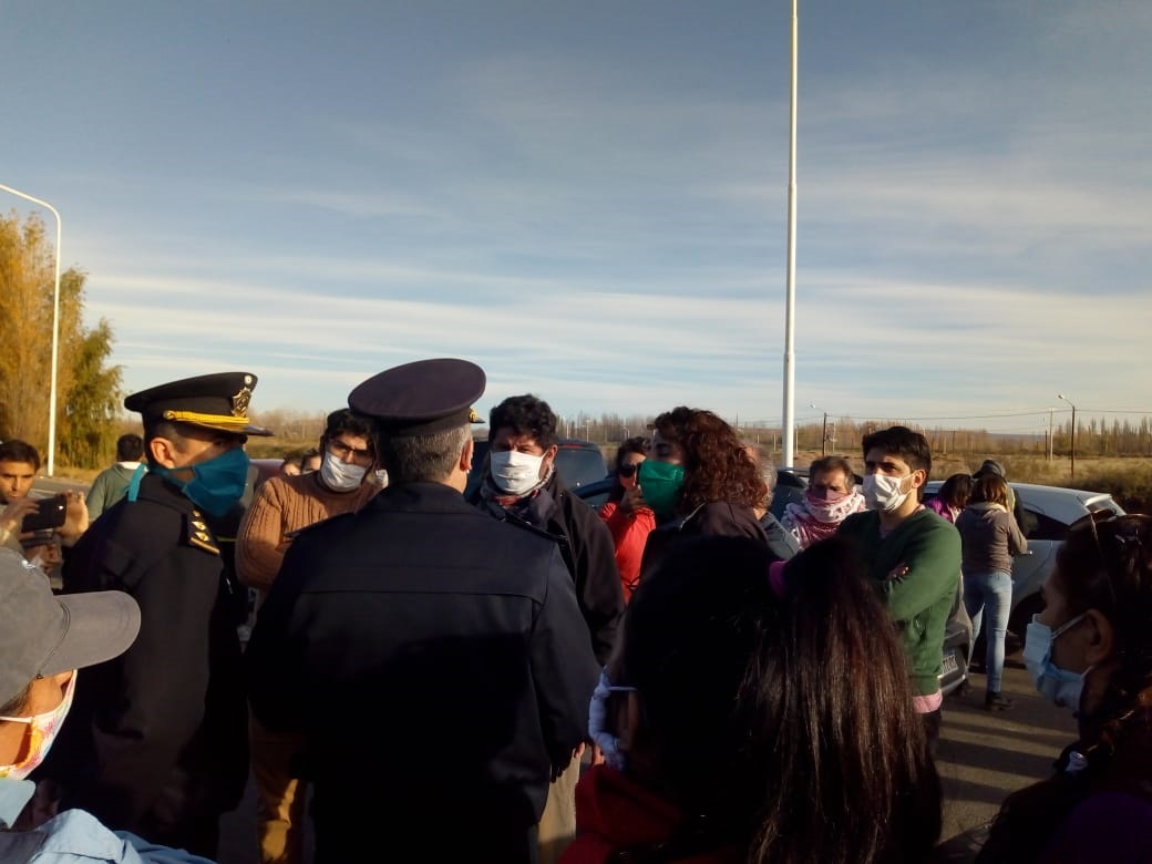 En Senillosa, próximo al corte de los mineros, la policía nos interceptó e impidió que la caravana llegue hasta Arroyito.