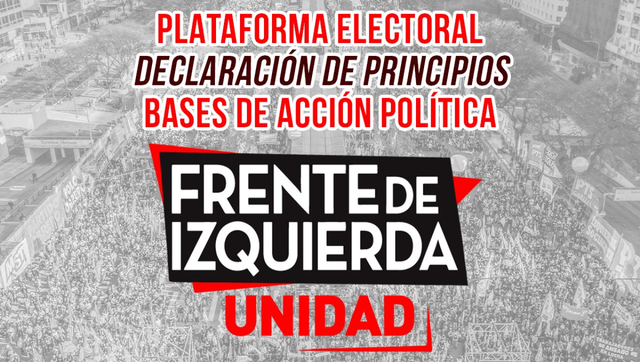 Lo hace en base a un planteo obrero y socialista y de independencia de clase, levantando un programa para impulsar la movilización política de los trabajadores y sectores explotados contra el gobierno y las patronales. El Frente de Izquierda Unidad se presenta como una referencia política para quienes luchan por la independencia de los sindicatos y la expulsión de la burocracia sindical y sus patotas, y por la independencia de todo movimiento popular del capital y su Estado.