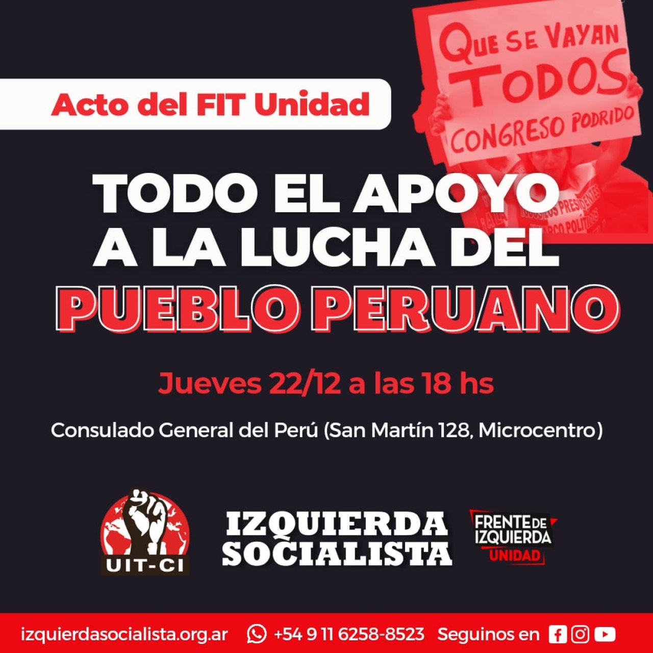 TODO EL APOYO A LA LUCHA DEL PUEBLO PERUANO
