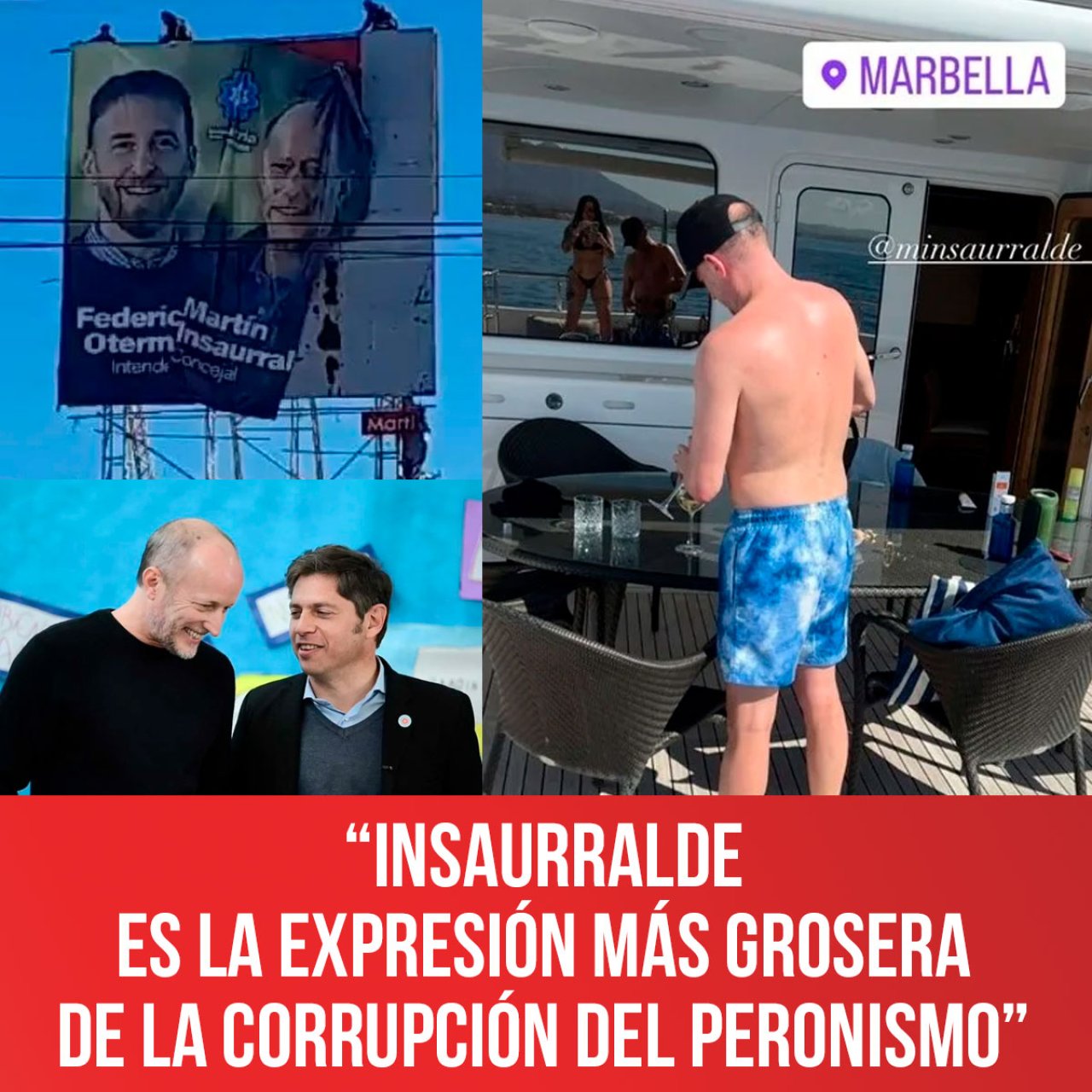 El escándalo protagonizado por el dirigente peronista Martín Insaurralde mostrándose junto a una modelo en un lujoso yate en Marbella cuyo alquiler diario rondaría los 11.000 euros, demuestra la descomposición del peronismo y de gran parte de los políticos patronales.