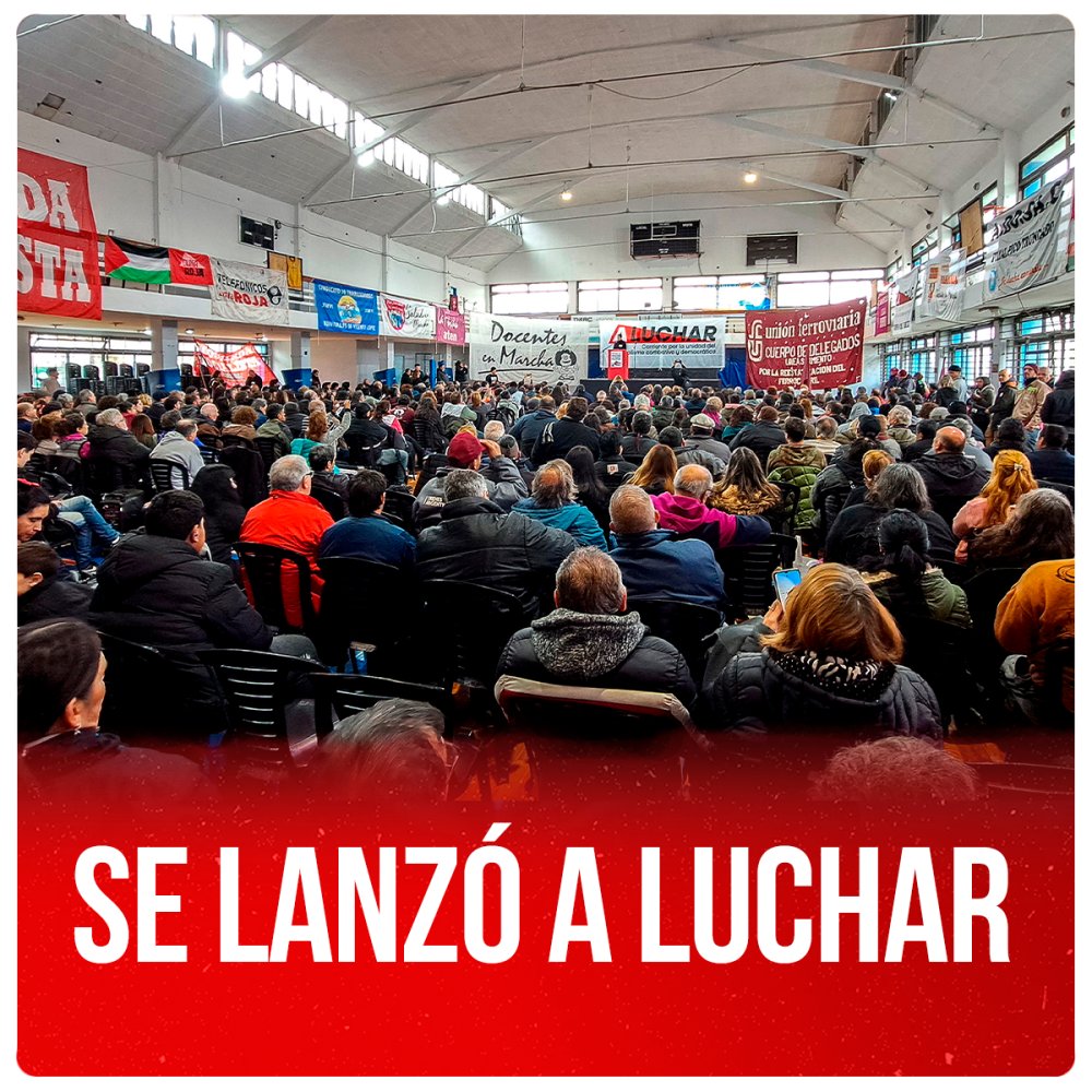 El próximo sábado 17 de agosto, a las 11hs, en el mini estadio del Club Banco Nación, vamos a realizar el Plenario Nacional de conformación de la corriente sindical combativa y democrática “A LUCHAR”. Invitamos a participar a las y los trabajadores, dirigentes, delegados, comisiones internas, luchadores, jóvenes, jubilados, para debatir en comisiones y resolver juntos la fundación de esta nueva corriente sindical.