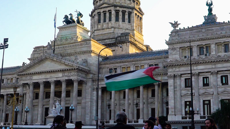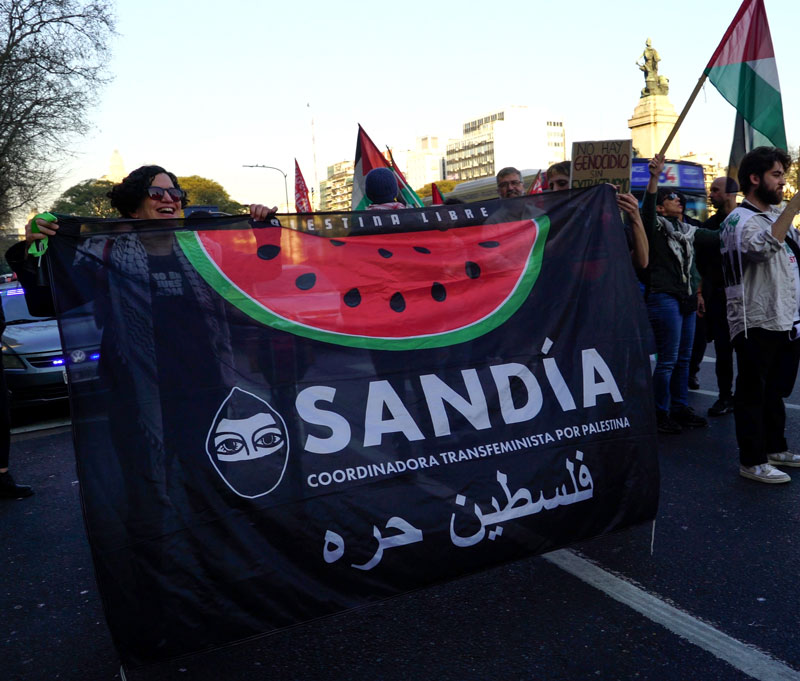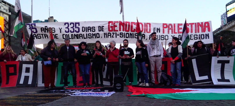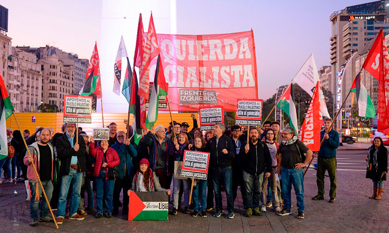 En Obelisco, la marcha cerró con la lectura de un comunicado donde se reclamó la ruptura de relaciones diplomáticas y comerciales con Israel, y se saludó a los países y a los pueblos que en el mundo se solidarizan con Palestina, incluso con acciones como las señaladas.