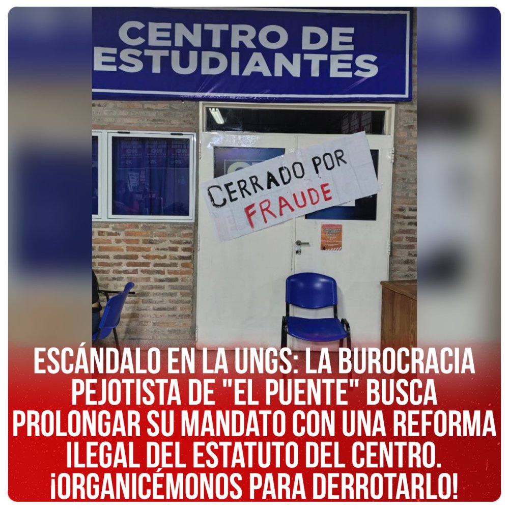El peronismo universitario realiza este fraude mientras las universidades nacionales continúan recibiendo el azote del plan motosierra de Milei, con dos años seguidos sin actualización presupuestaria, los salarios derrumbados, menos plata para funcionar y más recortes de becas y boletos. Los intereses de la conducción del CEUNGS pasan por arraigarse en el centro, dar rienda suelta a los negocios con empresas privadas y paralizar al movimiento estudiantil en vez de convocarlo a luchar en las calles con una tercera marcha federal universitaria. Los supuestos “Nacionales y populares” plantean un modelo a escala de las reformas burocráticas de la Franja Morada en la FUBA, son los mejores aliados del ajuste de Milei.