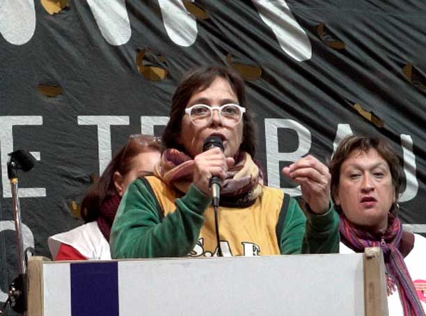 También estuvieron la secretaria general de ATEN Capital (docentes de Neuquén) Angélica Lagunas; la secretaria general de Ademys (docentes de CABA) Mariana Scayola; la secretaria general del SAE (docentes de La Rioja) Carolina Goycochea; el delegado general de la comisión interna de ATE Ministerio de Economía Pablo Almeida y Ana Valverde de Unión de Trabajadores Jubilados en Lucha (Utjel). Todas y todos ellos de la corriente sindical “A Luchar”.