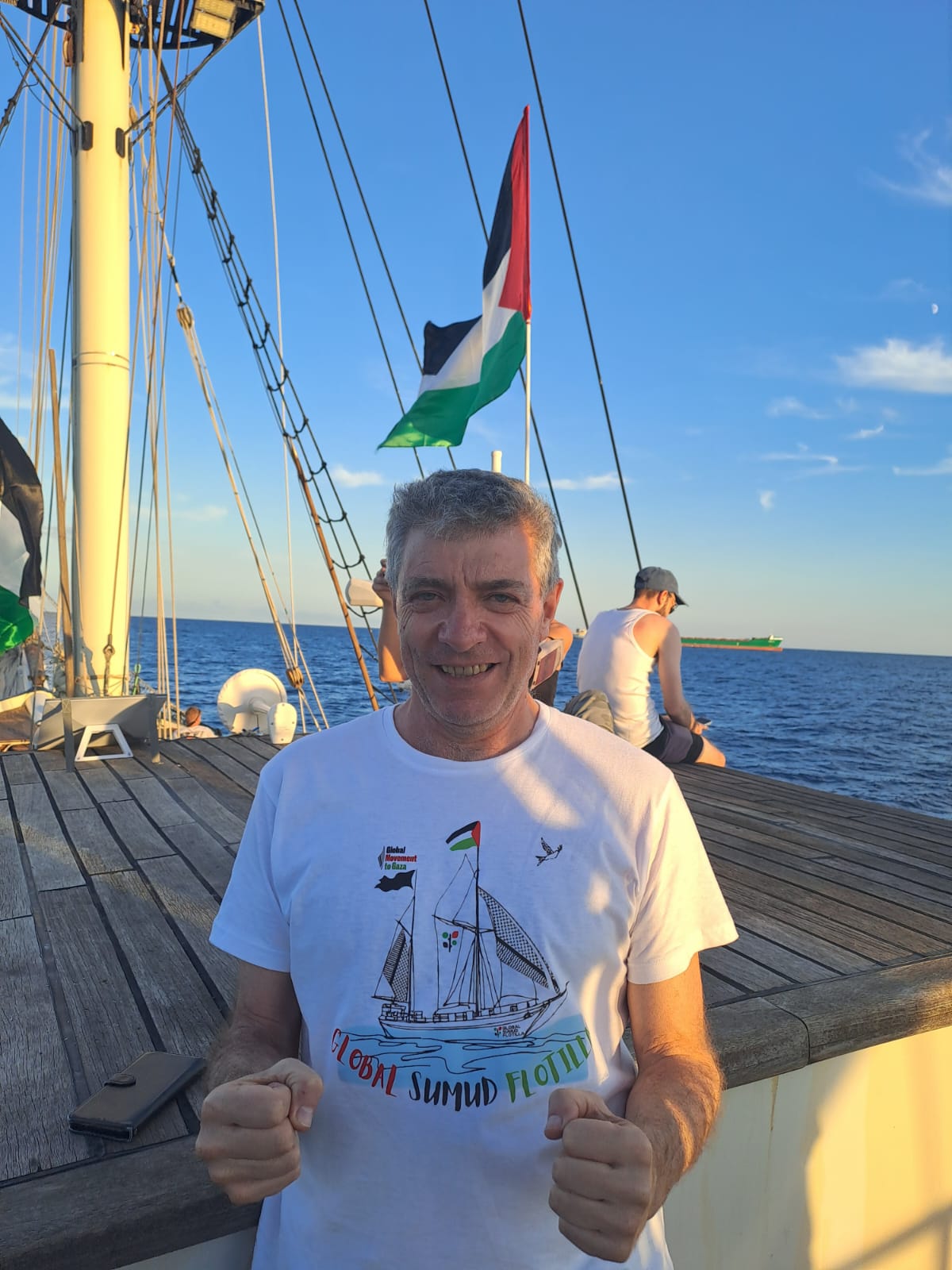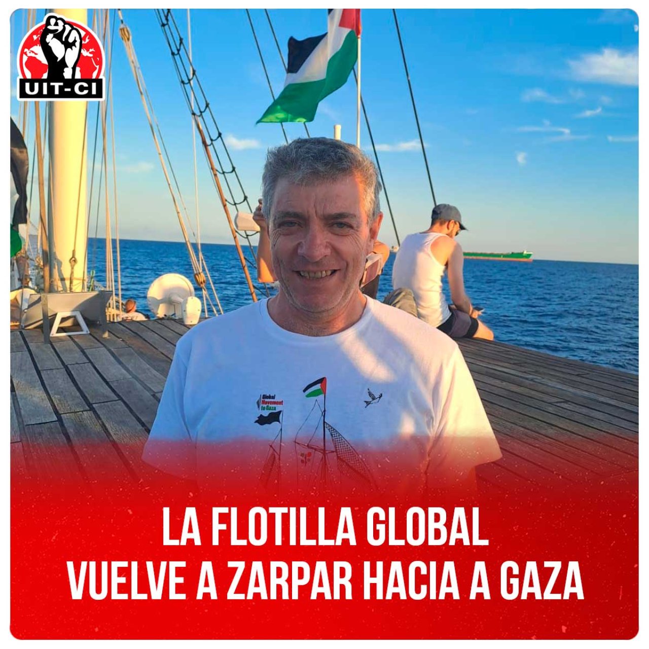 En Flotilla Global Sumud va la delegación de la UIT-CI, de la que forman parte Juan Carlos Giordano, diputado nacional de Izquierda Socialista de Argentina, en el Frente de Izquierda, junto a Ezequiel Peressini, también dirigente de Izquierda Socialista y de la UIT-CI. Ellos van el barco Sirius junto a otros diputados, algunos del Estado español, personalidades y activistas por la causa palestina de distintos países.