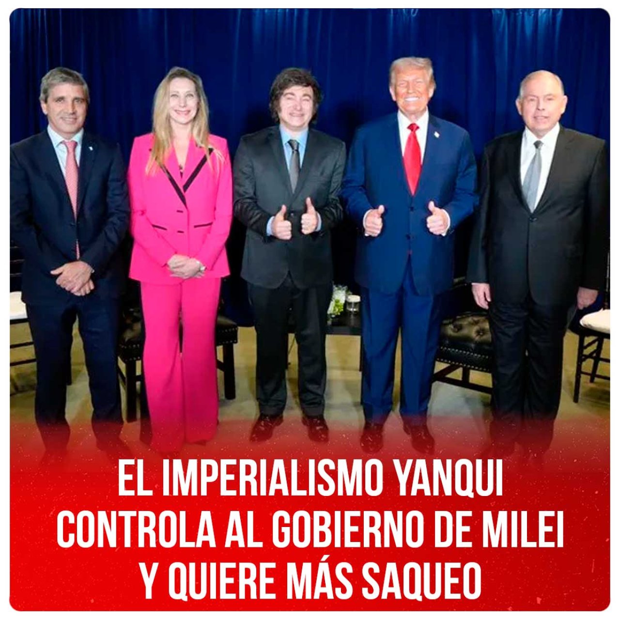 Ya conocemos las exigencias que siguen para después de las elecciones: más ajuste, reforma laboral, previsional y fiscal, prioridad para empresas yanquis en la entrega de nuestros recursos al saqueo imperialista y apertura a bases militares yanquis en nuestro territorio. Más lo que ya está sucediendo: que la decisión cotidiana de la política económica, hasta el extremo de cuál va a ser el valor de la tasa de interés de un préstamo, depende de un mensaje de Scott Bessent.