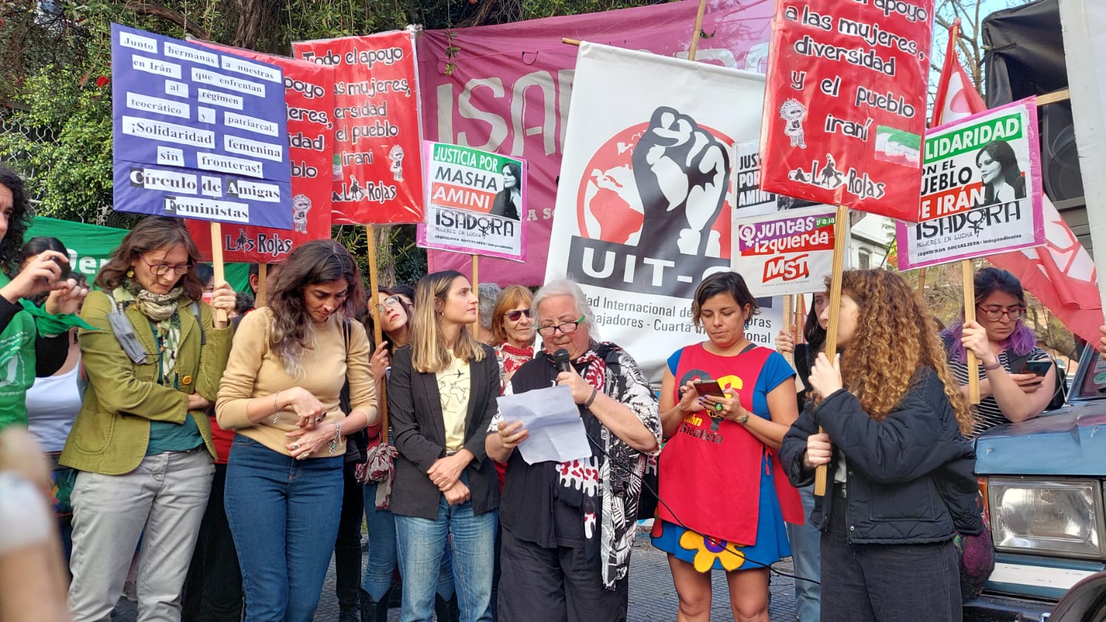 Colectivas feministas, organizaciones políticas y sociales convocaron a una concentración frente a la Embajada de Irán en Buenos Aires en solidaridad con las mujeres, las disidencias y el pueblo iraní. Estuvieron presentes las legisladoras porteñas electas, Mercedes Trimarchi y Mercedes De Mendieta de Izquierda Socialista/FIT unidad, la periodista Marta Dillon fundadora del colectivo Ni Una Menos, referentes de la Campaña Nacional por el Derecho al Aborto (CABA) y una delegación de Amnesty Internacional, entre otras.