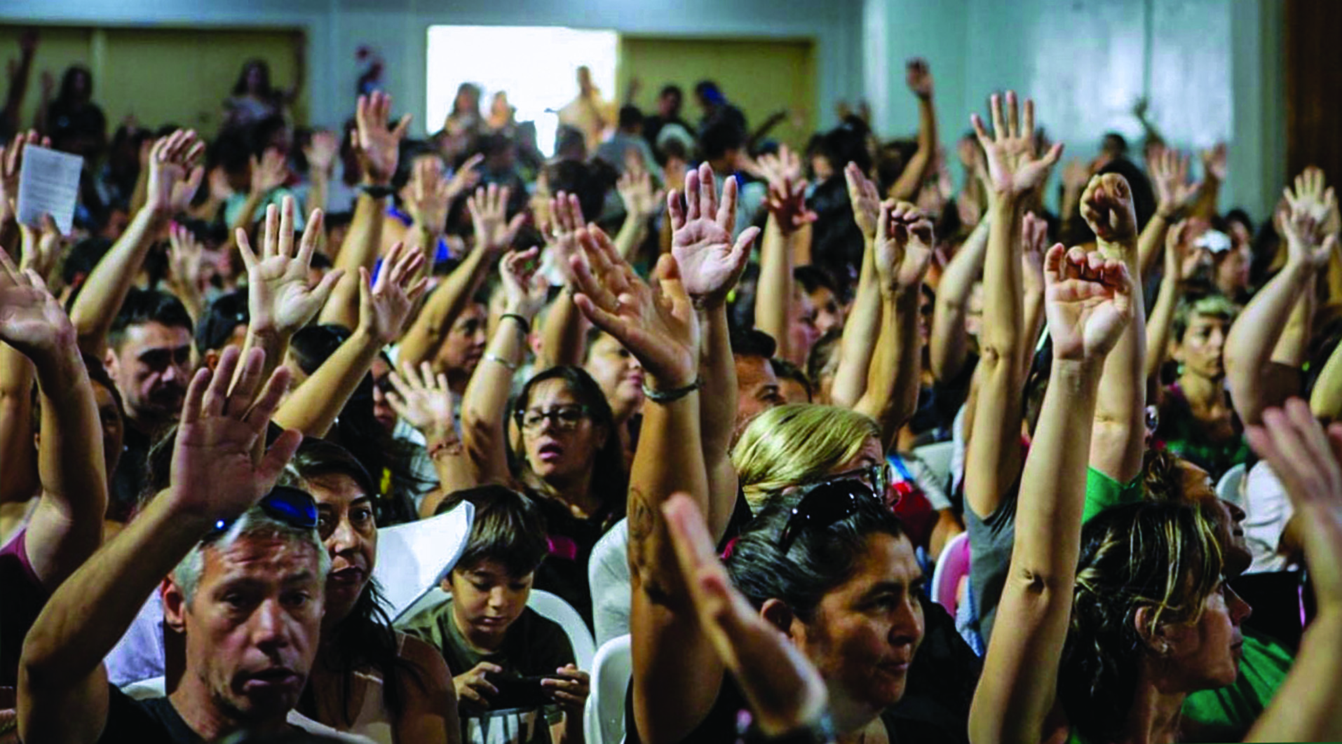 Asamblea de ATEN Neuquén capital votando un plan de acción