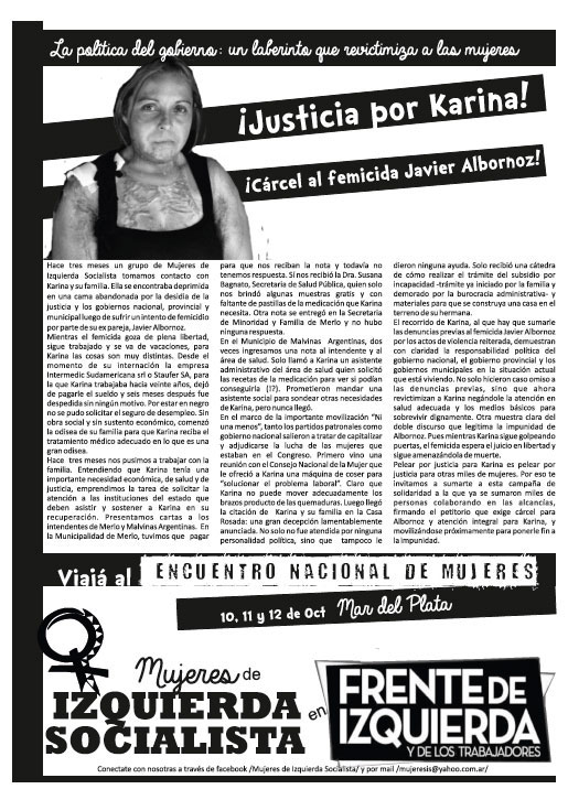 Las mujeres de Izquierda Socialista junto con compañeras independientes, decidimos impulsar una nueva agrupación de mujeres en lucha: Isadora. En este espacio confluimos mujeres trabajadoras, estudiantes y de los sectores populares que nos proponemos esta nueva forma de organizarnos para pelear mejor por nuestros derechos. Te invitamos a que seas parte y que te sumes a este nuevo desafío.