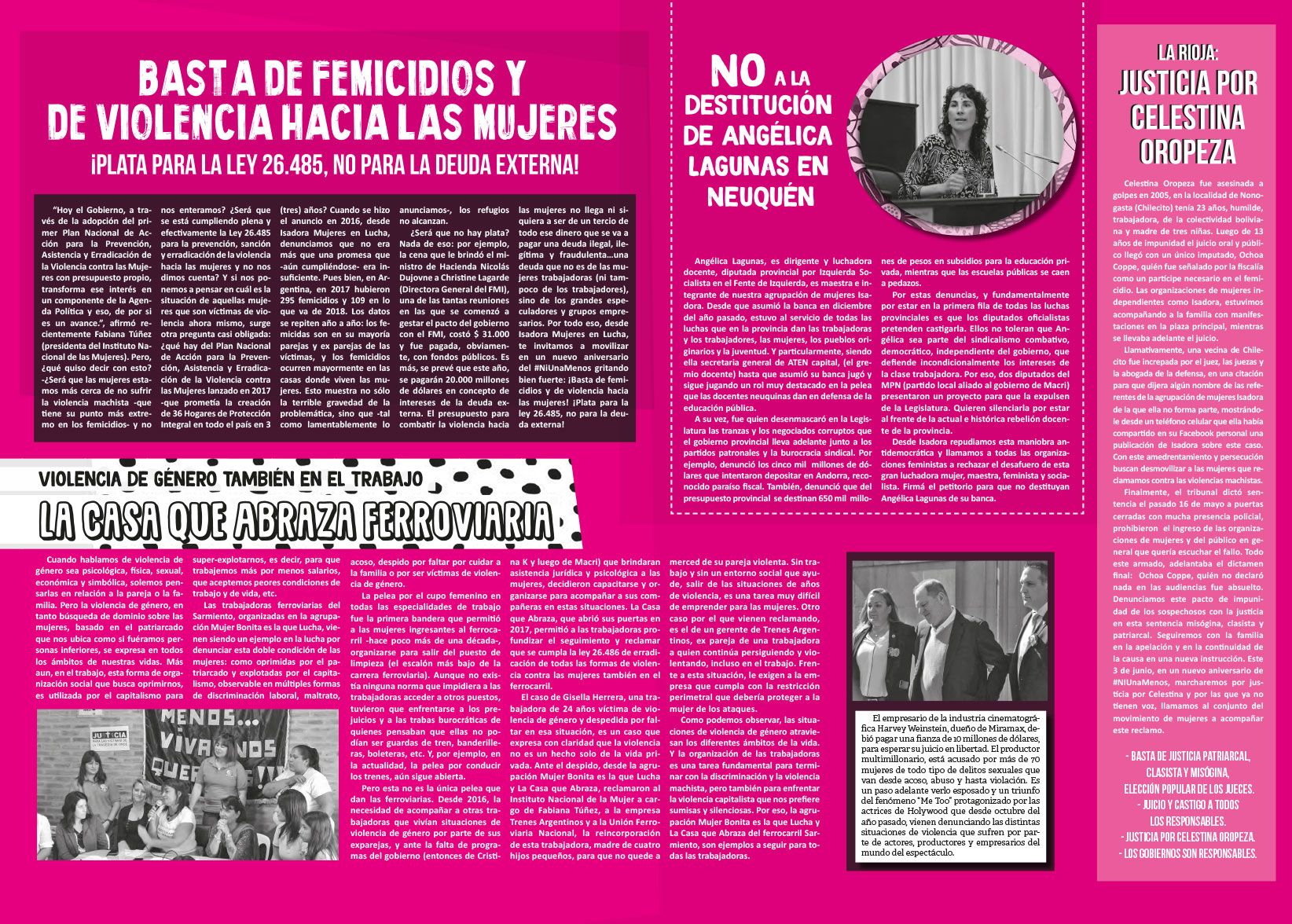 Nos mueven las ganas de cambiar las cosas, de cambiar esta sociedad podrida en la que unos pocos se benefician con el trabajo de la mayoría. Estamos hartas de que el trabajo doméstico recaiga solo en las mujeres, que nos acosen en el trabajo o que nos discriminen, que nos griten en la calle, que se burlen de nuestros cuerpos y de nuestra ropa, que seamos vistas como objetos que deben satisfacer al varón sin importar nuestras ganas. Estamos cansadas de que nos juzguen por no elegir la maternidad obligatoria o que nos critiquen por nuestros deseos sexuales.