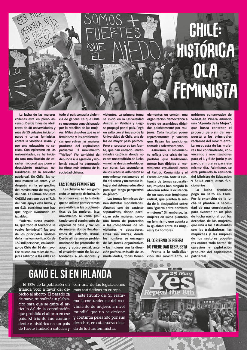 Nuestro semanario. En el que te acercamos el reflejo de las luchas del movimiento obrero, las mujeres y la juventud, además un análisis de los principales hechos de la realidad nacional e internacional.
