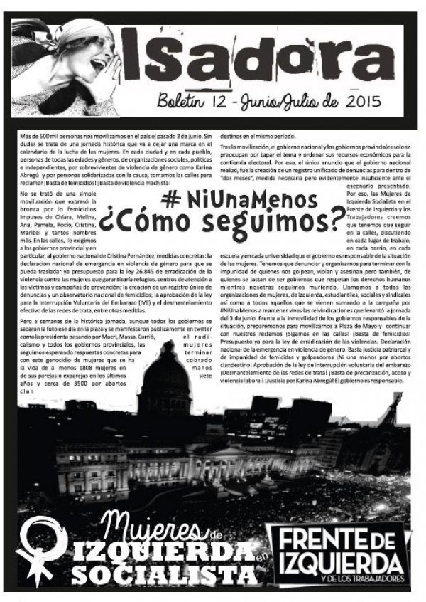 Hace cinco años escribíamos nuestro primer boletín Isadora, un folleto que fue mostrando distintos debates y la postura de Izquierda Socialista en relación a las problemáticas que nos atraviesan como mujeres y trabajadoras. Cuando lo imprimimos por primera vez no imaginábamos que eso se transformaría, con el tiempo, en una agrupación de mujeres más amplia. Mujeres que luchamos, nos organizamos y peleamos con rabia para conquistar nuestros derechos.