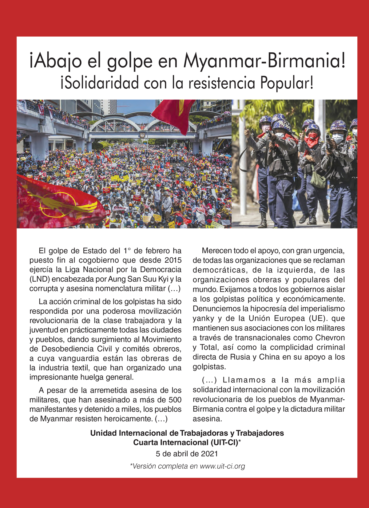 (Publicación de la Unidad Internacional de Trabajadoras y Trabajadores-Cuarta Internacional - UIT-CI)