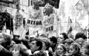 Además de ser una prestigiosa pedagoga, Adriana Puiggrós fue colaboradora de la escuela de capacitación del SUTEBA. Apenas asumió, hizo declaraciones en favor de la escuela pública y de elevar la calidad educativa. Sin embargo la flamante ministro se mostró poco dispuesta a mejorar los bajísimos salarios de los docentes. Le propuso a los gremios seguir con las reuniones quincenales y agendó tres temas a saber: el avance de la Reforma Educativa, la necesidad de discutir una paritaria docente y a regañadientes no le quedó mas remedio que aceptar una discusión salarial. La ministro se mostró en sintonía total con el ministro de Educación de la Nación, Daniel Filmus y reivindicó la reforma educativa que éste impulsa. Para ello, siguiendo los lineamientos de su antecesor Licenciado Oporto, ratificó el lanzamiento de la Secundaria Básica (7°-8° y 9°) y la aplicación en la provincia de las privatistas leyes de Financiamiento y de Educación Técnica, en el marco de un operativo para maquillar la alicaída reforma educativa. Además, en las discusiones sobre un proyecto de paritarias, colocó la necesidad de la reglamentación del derecho de huelga entre los docentes (también salud) y un tribunal que laude en caso de conflicto, y la necesidad revisar el Estatuto del Docente. Toda una ofensiva contra los docentes y la escuela pública. El Frente Gremial rechazó la reglamentación del derecho de huelga y se postergó la discusión sobre paritarias. La discusión salarial quedó estancada: el Frente Gremial propuso una mejora al básico de por lo menos $50 y elevar el conformado para que nadie gane en total por debajo de $850 (Diario El Día, La Plata). La ministro contestó que no hay plata y se pasó a cuarto intermedio a la espera de una nueva respuesta del gobierno. El Frente Gremial amenaza con paros La conducción Celeste-Azul y Blanca de SUTEBA y la FEB vienen colaborando y co-gestionando la educación desde hace varios años. ¿qué es lo que los ha llevado ahora a salirse del acta-acuerdo que ellos mismos firmaron en agosto?. En primer lugar que la inflación se ha tragado el mísero aumento salarial conquistado por la lucha de la base. Los docentes ven que otros gremios salieron a la lucha y consiguieron aumentos salariales muy superiores. Ya hacia fin de año los docentes empezaron a cuestionar claramente el acta acuerdo y todo indica que va a haber una gran presión desde abajo por mejorar los sueldos. A esto se agrega que el acta-acuerdo dejó muy mal parada a esta conducción sindical bastante desprestigiada y que este año hay elecciones en el SUTEBA en el mes de junio. Todo esto, mas la negativa del gobierno, ha empantanado las negociaciones “de verano” y la conducción sindical Celeste Azul y Blanca se ha visto obligada a amenazar con medidas de fuerza si no se satisfacen sus reclamos. Salir con todo por el salario Desde DOCENTES EN MARCHA participamos en la conducción de varias seccionales de oposición a la conducción provincial del SUTEBA y estamos convencidos que tenemos que salir con las seccionales combativas convocando a todo el activismo a plantear una gran campaña de difusión reclamando un no inicio y un Plan de Lucha Provincial por $890 de básico y un salario de $1800. No queremos limosnas ni aumentos tramposos. Llamamos a no tener ninguna confianza en las conducciones provinciales y a luchar por esta política reclamando también un plenario Provincial de Delegados de base con mandato y Asambleas Generales conjuntas SUTEBA-FEB, para que sean las bases las que discutan y resuelvan. Al servicio de esta política proponemos empezar ya a hacer reuniones en las escuelas y que se convoquen a reuniones de Delegados y Asambleas en las seccionales combativas y a la realización de un Plenario de Delegados en Lucha antes del 6 de marzo. Antes de lo que esperaban la burocracia y el gobierno, los docentes y las seccionales combativas se ponen en marcha para retomar la pelea por el salario. |