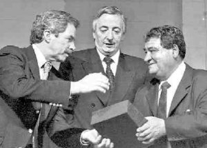 Kirchner pacta con ex duhaldistas¿Dónde quedó la «nueva política»?El año pasado, en el acto de lanzamiento de su candidatura, Cristina Kirchner calificó a Duhalde y los candidatos de las listas del PJ como protagonistas de la película “ El Padrino”. Millones votaron al Frente para la Victoria creyendo que así se desterraba a la “ vieja política”. Ahora Kirchner se abraza con los duhaldistas, y éstos afirman ser más kirchneristas que nunca. Pasadas las elecciones, la “ nueva política”, se ha mostrado como un “ nuevo engaño” de Kirchner y el PJ.