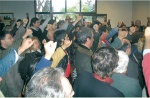 Entre lunes y martes decenas de compañeros, familiares y amigos lo despidieron yendo a su casa y al cementerio o enviando condolencias. Entre ellos se hicieron presentes Ernesto González, Horacio Lagar, Nora Ciapponi, Jorge Guidobono, dirigentes y militantes del FOS-LIT-CI; Cimientos; PTS; MST-Alternativa, MAS, LSR, entre otros. En el cementerio dijeron algunas palabras su compañera, María; el Indio Corso, que leyó partes del libro que estaba preparando sobre su memoria; Nelsa, quien lo visitaba en la cárcel; Alfredo Peñalva, de la dirección de la Regional La Plata (MST-El Socialista), y Miguel Sorans, en nombre de la Dirección Nacional del MST-El Socialista. Con los puños apretados dijimos bien fuerte: ¡Compañero Pelado, hasta el socialismo siempre! |
