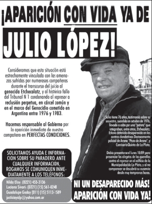 Caso López: exijamos al gobierno¡Aparición con vida ya!