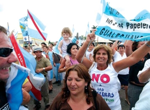 Para sorpresa de las delegaciones diplomáticas y de los gobiernos argentino y uruguayo, el Tribunal Internacional de La Haya, por 14 votos contra 1, resolvió no hacer lugar al pedido uruguayo de condena de los cortes de ruta que bloquean los pasos fronterizos en la provincia de Entre Ríos. La inesperada noticia fue recibida con gran entusiasmo y festejos en Gualeguaychú por parte de los asambleístas. Pero rápidamente los mismos vecinos entrerrianos salieron a despegarse del gobierno de Kirchner, que intentó adjudicarse el fallo como un triunfo propio, y fortalecer su estrategia de desmovilizar a los ambientalistas para llevar todo a la vía de las negociaciones a través del “facilitador” enviado por el rey de España. Apuesta también el gobierno a demostrar con este fallo que el juicio en el Tribunal de La Haya es una salida para el conflicto. ¿Pero es que ahora el tribunal internacional se ha vuelto contrario a las multinacionales? Para nada. La explicación de fondo es que un fallo condenatorio de los cortes de ruta iba a ser inaplicable por el gobierno de Kirchner, que no tiene ningún margen político para reprimir al pueblo de Entre Ríos a dos meses de las elecciones provinciales y a diez de las nacionales. Ahora la táctica gubernamental para desmovilizar combina el llamado a confiar en la vía diplomática con cuidadosas declaraciones de supuestos progresistas como las del juez Zaffaroni, que dice que cortar los puentes es legítimo siempre y cuando no sea por tiempo indefinido (Página/12, 28/1/07). Lo que no dice el gobierno es que mientras tanto la multinacional finlandesa sigue avanzando en la construcción de la planta pastera a ritmos de destajo, que están produciendo frecuentes accidentes laborales. Para cuando el Tribunal de La Haya emita un fallo en el juicio definitivo la pastera estará funcionando a pleno en la ciudad de Fray Bentos. Pero lo peor de todo no es esto, sino el aliento que le da el gobierno a las gestiones del “facilitador” Yáñez Barnuevo. Las gestiones del enviado del rey de España incluyen el desvío de los residuos a otra zona del río a través de un sistema de entubamiento y la construcción de una isla artificial en medio del río Uruguay para reducir el impacto visual de la planta. Los asambleístas de Gualeguaychú han definido estas propuestas claramente como lo que son: un intento de tapar el sol con las manos. Como ellos mismos marcan, la única salida que existe al conflicto es que se vaya Botnia, que viene a instalarse en estas lejanas tierras del cono Sur para traernos sólo depredación, contaminación y muerte. La lucha del pueblo de Entre Ríos sigue firme y sumando popularidad en todo el país. Los vecinos de Gualeguaychú le han pedido al titular de la CGT, Hugo Moyano, que “se reúna con su par uruguaya y les sugieran a los gobiernos que se reúnan” (Página/12, 30/1/07). A la CGT hay que exigirle que se sume a la pelea del pueblo entrerriano y que, junto a la central de trabajadores del Uruguay, definan un plan de acción común contra las multinacionales de la muerte, que abundan en ambas orillas. Mientras tanto, la lucha hay que seguirla desde abajo hasta que las pasteras de la muerte se vayan de estas tierras. Galeano, contra las pasterasEl escritor Eduardo Galeano es uruguayo y un histórico seguidor del partido gobernante, el Frente Amplio. Pero eso no le impide ser un consecuente detractor de la instalación de las pasteras en su país. Las razones las explica él mismo: “…la celulosa es devastadora. Entre otras cosas, nos van a dejar sin agua. Las plantaciones forestales industriales nos van a dejar sin una gota. Acá se hizo el único plebiscito en el mundo por el tema del agua, que finalmente declaró que el agua es un bien público… la instalación de la pastera de origen finlandés Botnia en Fray Bentos es un modo de traicionar la voluntad del pueblo expresada en ese plebiscito”. (Página/12, 18/1/07). |