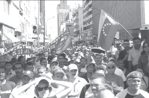 Venezuela“Nacionalizacion sin indemnización”El 8 de febrero, más de 6.000 trabajadores dominaron las calles céntricas de Caracas reclamando nacionalización sin indemnización y bajo control obrero de las empresas Cantv, Sidor, las de electricidad, del sector petrolero de la Faja del Orinoco, Aeropostal y de Sanitarios Maracay, entre otras.