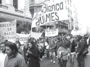 Una importante columna de docentes bonaerenses y de Capital, marchó este 4 por las calles porteñas. Convocados por las 9 comisiones directivas opositoras de SUTEBA, ADEMyS y directivos de la oposición, congresales, agrupaciones y partidos de izquierda, haciendo eco al llamado de ATEN Capital, más de mil docentes se concentraron en la Plaza Congreso y marcharon hacia la Casa de la Provincia de Buenos Aires. Allí fueron recibidos y presentaron un documento, reclamando un inmediato aumento salarial que se equipare a la canasta familiar, y soluciones a los problemas de infraestructura. Posteriormente se marchó a la Casa de Neuquén, donde se realizó otro acto, y se leyó un documento elaborado en común, solidario con los docentes neuquinos, exigiendo perpetua a Poblete y cárcel a Sobisch. Hubo unanimidad en que este importante paso de profundizar la unidad en las acciones de lucha, debe seguir, con la exigencia a CTERA y SUTEBA, para que rompan su pasividad y llamen a un plan de lucha por aumento salarial. Y que desde cada seccional, vamos a impulsar las medidas necesarias para seguir avanzando en esta lucha. |