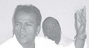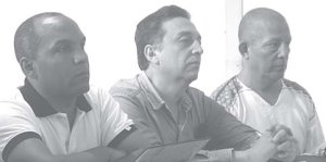 De izquierda a derecha Pastor de las Rosas, Cuauhtémoc Ruíz, junto a otro miembro del POS |