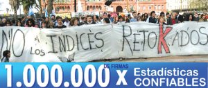 La campaña por un millón de firmas para recuperar el INDEC ha comenzado con éxito. De todo el país comienzan a llegar firmas y pronunciamientos expresando el repudio que existe contra la manipulación de los índices por parte de la intervención del gobierno. Y la solidaridad que tienen los trabajadores que resisten a dicha intervención enfrentando aprietes, despidos y desplazamientos. Mientras tanto y pese a que los índices son criticados hasta por propios incondicionales del gobierno, como Moyano de la CGT, la mentira oficial sigue su curso. Lamentablemente, Estela Carlotto, presidenta de Abuelas de Plaza de Mayo, la defendió a rajatabla. En las provincias donde las direcciones de estadísticas no han sido intervenidas, la inflación calculada para este año está entre el 25 y el 34%, contra el 9% de la del INDEK. ¡Un escándalo! Pero esto no es todo. El gobierno planifica seguir con la burla el año próximo. Por eso en el presupuesto 2009 estima una inflación del 7,6%. O sea que, para el oficialismo, la inflación casi no existe. Será por eso que en los 218 discursos pronunciados desde que asumió, la presidenta mencionó sólo una vez la palabra inflación. Además, los Kirchner siguen ratificando al responsable directo de la intervención y las patotas en el INDEC, el impresentable secretario de Comercio Guillermo “patota” Moreno, quien en estos días autorizó subas que van del 3 al 9% en productos de consumo popular. En contra de todo esto es que llamamos a redoblar la campaña nacional para echar a Moreno, la intervención y su patota del INDEC; para que vuelvan todos los trabajadores desplazados y volvamos a tener estadísticas confiables para ponerlas al servicio de los trabajadores y el pueblo. Para ello firme el petitorio en www.ateindec.org.ar y en la planilla que se está haciéndo circular. |