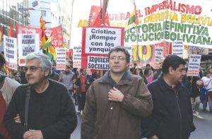 Hace dos meses estuvo a la cabeza de la movilización de 80.000 personas, que desde El Alto fue a la embajada yanqui exigiendo la inmediata expulsión del embajador Phillip Goldberg. Esa movilización logró que efectivamente el yanqui se tuviera que ir durante dos semanas porque, dijo, “temía por su seguridad”. Pero luego volvió… Lo entrevistamos telefónicamente el domingo 14. ¿Cómo ves la situación? Lamentablemente, para los guerreros del gas, para los que luchamos por el proceso de cambio, el gobierno de Evo Morales ha hecho resucitar a la derecha que era un cadáver político. Le hemos pedido hace mucho que descabece a la oligarquía, que sean encarcelados por sus muchos delitos. Pero él no hizo caso. Ellos se envalentonaron con la inacción del gobierno. El pueblo está dispuesto a defender este proceso de cambio. Por eso estamos exigiendo armas para que el pueblo pueda ir a poner orden. Nunca en la historia las revoluciones se pudieron hacer con diálogo, ni cayeron del cielo. Siempre ha sido con la lucha del pueblo. ¿Qué medidas van a tomar? Desde el M17 estamos enviando la ayuda que podemos al Plan 3000, el barrio popular que resiste a los fascistas en Santa Cruz. Estamos enviando hondas, las hondas que lanzan piedras, una antigua arma. No descartamos partir en los próximos días, con las organizaciones sociales, hacia Santa Cruz. El lunes, junto a la COR, la Fejuve (Federación de Juntas Vecinales) y la UPEA (Universidad Popular de El Alto) haremos una gran manifestación hacia La Paz, a la embajada yanqui y a la sede del gobierno, para repudiar la violencia de la oligarquía. ¿Qué mensaje querés enviar al pueblo argentino? Pedir a todos los gobiernos latinoamericanos la solidaridad con Bolivia. Y especialmente a los movimientos populares y revolucionarios que movilicen para apoyar al pueblo boliviano. Reunión de presidentes sudamericanos en ChileLa reunión de los presidentes sudamericanos en Santiago de Chile, con la presencia de Lula, Cristina Kirchner, Bachelet (Chile), Chávez, Correa (Ecuador), Uribe (Colombia), Lugo (Paraguay), Tabaré Vázquez y el propio Evo Morales, concluyó formalmente con una declaración de apoyo al gobierno constitucional y a la integridad de Bolivia. Sin embargo este “apoyo” es totalmente condicionado. En primer lugar, los presidentes se negaron a aceptar la propuesta de Chávez de condenar la intromisión yanqui que llevó a Bolivia a expulsar a su embajador (y posteriormente a Venezuela a hacer lo mismo). Pero además, el apoyo quedó condicionado al “diálogo” que debe abrirse con los prefectos golpistas. Es decir, que en vez de apoyar al gobierno legítimo votado por la inmensa mayoría de los bolivianos para que castigue a los golpistas y genocidas, lo obliga a dialogar con ellos. E incluso nombraron una comisión para “investigar” el genocidio de Pando (¡como si no estuviera clarísimo!). El rol principal en este aspecto, lo cumplió el brasileño Lula. Así lo describe la BBC de Londres: “Y la oposición no ha quedado descontenta a pesar de las expresiones de apoyo a Morales, gracias al desempeño que tuvo en el encuentro el mandatario brasileño”. “Lula se reunió antes de la cumbre con Morales y sus detractores (¡es decir con los golpistas! n.de r.) … Para él, Unasur debía escuchar las «dos campanas» si se proponía pacificar el país andino”. Por supuesto que Uribe, Cristina Kirchner y Bachelet secundaron este rol proimperialista por mantener impune y con poder a la derecha. No hay que olvidar que esa derecha tiene muchos intereses en común con las clases dominantes de los países vecinos, especialmente Brasil. Petrobrás (que también tiene socios multinacionales), es la principal empresa petrolera que opera en Bolivia. Y los ricos de Santa Cruz y Tarija, hacen negocios con Petrobrás para quedarse con parte de la renta agraria. Además, también hay empresarios brasileños con tierras (especialmente dedicadas a la soja) en Santa Cruz, Beni y Pando. Estos autotitulados “demócratas”, fueron incapaces de tomar ninguna medida de ayuda real. Tampoco de convocar a sus pueblos a manifestaciones de solidaridad. En realidad actuaron guiados sobre todo por el temor de un posible estallido revolucionario del pueblo boliviano. “Los mandatarios tuvieron la convicción de que Bolivia no puede incendiarse. Brasil iría a un desastre si pierde el 50% del suministro de gas que le vende Bolivia… Y Argentina perdería sus 7 millones de metros cúbicos… Nadie ignora que si una rebelión de derecha saca a Evo Morales del poder, el casi 70% de los ciudadanos… que votaron por él, no se quedarán quietos. Y el incendio amenazará con propagarse a otros países. Las FF.AA. de Bolivia lo saben. Por eso, otro dato del informe de inteligencia que ayer se barajó fue que para los militares de ese país después de Evo ya no hay salida posible” (Clarín, 16/9/8). Marchas de apoyo
