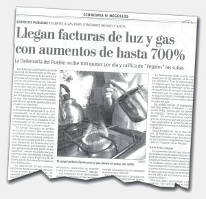 ¡No al tarifazo!Se están recibiendo facturas con aumentos que llegan al 700% en el caso de la electricidad y al 200% en el servicio de gas. Ante la imposibilidad de pagarlo, ya han comenzado los cortes.
