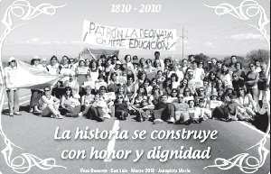 Aunque desde muchos medios oficialistas anuncien que este año se pudo comenzar el ciclo lectivo sin inconvenientes gracias al pacto inconsulto de aumento salarial de CTERA y Cristina, la realidad es muy distinta, ya que más de diez provincias empezaron con conflictos. Una de ellas, San Luis, va por la quinta semana de paro con movilizaciones porque los docentes no se resignan a continuar con un básico de $ 715. “A nosotros no nos interesa el mínimo pactado por la Nación queremos aumento al básico”, afirma uno de los maestros que se encuentra junto a padres y alumnos en la plaza Independencia. Además exigen el pago de ruralidad y el doble cargo (el segundo se paga solo el 20%). Por su parte el Gobernador Rodríguez Saá les contestó que no habrá aumentos por este año mientras continúa “invirtiendo” millonarias sumas en réplicas del Cabildo, carnavales de Rio y propagandas de un San Luis irreal. Desde Docentes en Marcha nos solidarizamos con nuestros compañeros en lucha y exigimos a CTERA que llame a un paro nacional por todas las provincias aisladas en conflicto y envíe fondos de huelga. Cristina: ¿La Sarmiento del Bicentenario?“Me siento un poco la Sarmiento del Bicentenario”, afirmó la Presidente, al anunciar la entrega de 3 millones de computadoras para estudiantes y docentes con plata de la Anses. Las primeras 350.000 llegarán entre abril y octubre y recién en 2012 (¡si votan al kirchnerismo, quiso decir!), las tendrá el resto. Este anuncio se hace después del plan “PC baratas para niños” que quedó convertido en un negociado allá por 2008, las cuales iban a costar 100 dólares pero al final terminaban saliendo el triple. El plan cayó y los chicos quedaron en banda ¿Estaremos en puerta de otra gran estafa? Muy probable. La presidente quiere “que se la recuerde como quien luchó denodadamente por la igualdad y la distribución de la riqueza”. Pero ya miles y miles la consideran la abanderada… del disparate. |
