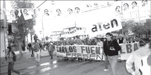 En este primer encuentro, el gobierno no ofreció nada que se pueda tener en cuenta. La respuesta de los docentes fue profundizar el plan de lucha con tres días de paro para esta semana, que comenzamos este martes con una marcha por el centro de la ciudad y la instalación de una carpa frente a la Casa de Gobierno hasta el miércoles a la tarde, en que marcharemos a la segunda reunión con el gobierno. Las medidas de fuerza mantienen su masividad en el tiempo porque los reclamos son muy sentidos, ya que no sólo se trata de lo salarial sino que tenemos cortada la obra social y con un peligro real del traspaso de la caja de jubilación al Anses. Si bien nuestras medidas son masivas, somos concientes de la necesidad de unificar la lucha con el resto de los estatales que tienen exactamente nuestros mismos reclamos. Desgraciadamente los dirigentes de la CTA se niegan a unificar la pelea, solo convocan a medidas como retiros una vez a la semana, debilitando el necesario reclamo común. Ha llegado la hora de unificar de verdad, con un plan de lucha en común votado por la base de los gremios. A tres años del fusilamiento de Carlos Fuentealba El domingo nos congregamos más de 5.000 personas en una marcha por justicia total. Exigíamos cárcel a los responsables políticos del asesinato de Carlos, en especial de Jorge Sobisch. En este nuevo aniversario el escenario político se repite en la provincia, ya que el actual gobernador, Jorge Sapag, hace apenas dos semanas atrás se abrazó una vez más con Sobisch para continuar con el cogobierno, repartiéndose ministerios y pactando, entre otras cosas, el encubrimiento y la impunidad para el ex gobernador en la causa de Carlos Fuentealba. El escenario se repite también para los docentes, porque nos encuentra en medio de un plan de lucha ante la sordera oficial. Esta inmensa marcha contó con la presencia de Baradel, Secretario General de Suteba. Vino el 4 de abril de 2010, pero en abril de 2007 brilló por su ausencia. Si bien encabezó la marcha, durante el acto permaneció escondido detrás del escenario y no pudo subir al palco. Esta desventura de Baradel tiene una sola explicación: la dirigencia de Aten lo trae porque comparte la misma política que la junta ejecutiva de CTERA, pero luego lo tienen que esconder atrás del palco porque es repudiado por la base docente que está harta de las agachadas y del manoseo de la burocracia sindical. Para recordar a Carlos también se realizaron otros eventos en el resto del país. En Buenos Aires, por ejemplo, todo el arco opositor a la burocracia Celeste de Ctera se convocó en un acto donde hubo varios oradores, entre ellos la compañera Graciela Calderón, dirigente de Docentes en Marcha, quien hizo un paralelismo entre el abandono de CTERA hace tres años y el actual, por lo que exigió desde ese lugar un paro nacional en apoyo a las luchas de Neuquén y San Luis. Y pidió continuar la pelea por juicio y castigo para Sobisch y todos los responsables. Todo esto fortalece las luchas en curso, siendo imprescindible enviar solidaridad a los docentes neuquinos y puntanos. Continúa la lucha docente en San Luis