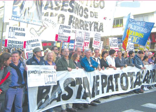 Ya hay varios detenidos por el asesinato de Mariano Ferreyra. Pero el autor político e intelectual, el burócrata millonario de la Unión Ferroviaria, José Pedraza, sigue libre. Tampoco hubo sanciones para la policía que dejó actuar a la patota asesina. Y, menos aún, contra los empresarios tercerizadores apañados por el gobierno, quienes, en este caso, defendieron el accionar de esa nefasta burocracia (socia en sus negocios). Patronales que siguen haciendo fortunas mediante la precarización laboral. Está claro que sólo habrá avances con lucha y movilización. Así lo hicimos el pasado 9 de noviembre en una nueva movilización a Plaza de Mayo. Lucha que ha tenido importantes avances. Como la efectivización de trabajadores tercerizados del Roca (ver página 9), pelea preparatoria que se avecina por el pase a planta permanente. Y si hay detenidos en la causa, es fruto del repudio popular. Hay que seguir adelante con una campaña unitaria y nacional. Por cárcel a Pedraza y a todos los responsables. Pase a planta de los tercerizados del Roca. Fuera los empresarios de la precarización laboral. Lucha que debe mantenerse en cada lugar de trabajo, estudio y barrio. Llamando a que se sumen sindicatos, cuerpos de delegados, organizaciones estudiantiles, barriales y de derechos humanos, como lo estàn haciendo los ferroviarios de la opositora lista Bordo nacional. Emplazando a diputados y personalidades. Y exigiendo que la CGT y los dos sectores de la CTA rompan el pacto con el gobierno y tomen medidas al efecto. MarchaViernes 19/11, 17 hs. De Estación Constitución a Plaza de Mayo
