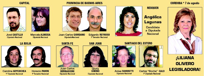 Ernestina Pais es conductora central de CQC y del programa matutino en radio Metro, Día Perfecto. En la emisión radial del pasado lunes, luego de escuchar un spot del Frente de Izquierda denunciando el intento de proscripción, se solidarizó, reclamando que la izquierda tiene que estar en las presidenciales de octubre. Lo mismo hizo Jorge Lanata en el programa La Cornisa de Luis Majul del pasado domingo Anotate como fiscalEl las elecciones del próximo 7 de agosto en Córdoba, el Frente de Izquierda tiene el desafío de reelegir a nuestra actual diputada Liliana Olivero e intentar ir por más bancas de izquierda. Pero como se vota por primera vez con boleta única, los punteros de los partidos tradicionales tratarán de ganar votos con maniobras o distintas “interpretaciones” en desmedro de la izquierda. No lo tenemos que permitir. Por eso tenés que ayudarnos a fiscalizar la elección para defender cada uno de los sufragios que obtenga el Frente. Otro tanto pasará en la estratégica provincia de Buenos Aires. En este distrito, el Juez Blanco había dispuesto que cada partido se hiciese cargo de la distribución de las boletas para el cuarto oscuro el 14 de agosto. Cada partido tenía que llevarlas a cada urna el día de la votación. Esto siempre lo hizo el Correo, desde 1983. Si bien la Cámara Nacional Electoral no hizo lugar a esta resolución y dijo que garantizará las boletas, tenemos que tomar todos los reaseguros para ello. Por eso es que llamamos a redoblar el esfuerzo para que el Frente de Izquierda tenga la mayor cantidad de fiscales para cuidar los votos que obtenga en este distrito clave. Lo mismo en el resto de las provincias. Anotate como fiscal y ayudanos a vencer la proscripción en todo el país. ¡OJO con un mail falso!Está circulando por Internet un mail con información falsa. El mismo indica que, en las internas del 14 de agosto, hay que “poner todas las boletas juntas de los candidatos que el votante desee que participen en los comicios de octubre... Por ejemplo, si hay 7 boletas, se pueden poner las 7...sin que sean anuladas”. Esto es FALSO. Si se vota de esa manera, los votos serán anulados, como lo es en cualquier elección. Es decir, el que ponga varias boletas de la misma categoría (por ejemplo a presidente) de distintos partidos adentro del sobre, está anulando a todos. La falsa información es claramente malintencionada ya que está propiciando el voto nulo, cuando lo que hace falta en las internas del 14 de agosto es votar al Frente de Izquierda para que alcancemos los 400.000 votos que nos exigen para que no nos proscriban de las presidenciales de octubre. ¡A no dejarse confundir! Balotaje porteño: Nuevo revés para el kirchnerismoSerá porque el resultado ya estaba cantado. Será por las vacaciones de invierno o por la “ola polar. Pero lo cierto es que pocas veces una elección porteña concitó tan poco interés. Eran las cinco de la tarde y faltaban votar 250 mil personas. A “última hora”, luego que desde ambos candidatos hicieran llamados a “concurrir a votar”, se terminó acercando más gente y los números del comicio aparecieron “presentables”. El candidato de Cristina sufrió una nueva derrota, cayendo categóricamente por 65 a 35%. Quedó demostrado que el supuesto “progresismo” kirchnerista no es alternativa al macrismo. No podía serlo: con él vino co-gobernando la Ciudad. Como dijimos en nuestra campaña, ninguno de los dos solucionó ni va a solucionar los graves problemas sociales. La falta de vivienda la sufren tanto los trabajadores y familias porteñas, como aquellos que viven en el resto del país. Lo mismo pasa con el desastre de la educación y la salud pública. Tanto Macri como Cristina respondieron con represión y muerte, como ocurrió en el Indoamericano y en Jujuy. Carlos Tomada, el vice de Filmus, era carne y uña de Pedraza, el mayor responsable del asesinato de Mariano Ferreyra. El gobierno nacional trató patéticamente de ofrecerse como contracara del macrismo, incluso mostrándose como más “eficiente para la seguridad”, militarizando la zona sur de la Ciudad con Gendarmería y Prefectura. Obviamente no lo lograron. Sacaron menos votos que en el balotaje de 2007. El operativo kirchnerista pos-elecciones de decir que sacaron el “mayor porcentaje de su historia”, o de que el resultado se debe a “las maniobras de Clarín”, suena tan ridículo que ni merece respuesta. Se viene el segundo mandato de Macri. Pasaron las elecciones, el kirchnerismo, con la excusa de ser la oposición “seria”, volverá a votarle la mayoría de las leyes. Como en los cuatro años pasados, seremos los luchadores y la izquierda los que volveremos a oponernos a las políticas privatistas y elitistas del gobierno de la Ciudad. J.C.