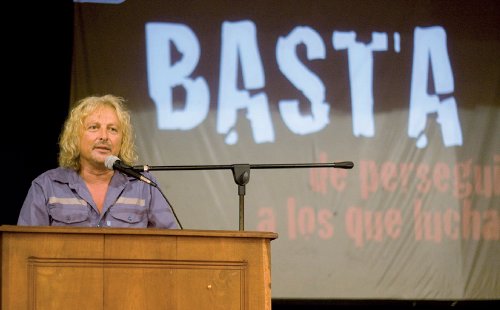 Ante todo, un agradecimiento por la invitación a formar parte de este acto contra la criminalización de la protesta social. Nosotros formamos parte de la Comisión en pro del desprocesamiento de los compañeros a lo largo y ancho del país. Hemos impulsado en Adosac, nuestro gremio, a través del congreso provincial, la participación en esta comisión y las campañas de desprocesamiento. Ustedes saben que Santa Cruz tiene una larga y triste historia en relación a la criminalización y a la judicialización de la protesta. Historia que no empieza pero sí se ha agravado en el 2011, pero es una historia que abarca las distintas etapas del gobierno kirchnerista, porque el Frente para la Victoria en Santa Cruz gobierna desde hace 20 años y los docentes hemos sido siempre un gremio opositor y no nos tragamos la idea de que es progresista y popular, y que pertenece a un modelo nacional y popular (...). En 2011, a partir de la lucha docente y del enfrentamiento con el gobierno, tenemos 63 compañeros docentes procesados en las distintas zonas de Santa Cruz, concentrados principalmente en las áreas petroleras, al norte de la provincia de Santa Cruz, con más de 50 compañeros procesados que están penalizados bajo el código penal por entorpecimiento de la actividad económica, cuando en realidad lo que hemos hecho siempre es denunciar la entrega que ha hecho nuestro Gobernador de las áreas petroleras y de la minería en Santa Cruz, respondiendo a una política neoliberal. Nosotros, como parte de Adosac provincial y como parte de Adosac Pico Truncado, somos una línea interna nueva que creemos que las conducciones deben ser combativas y llevar adelante el reclamo de las bases; por eso estamos dispuestos a luchar y a continuar la lucha a partir de estas nuevas instancias. Para finalizar mi saludo, quiero dejar dos compromisos desde la agrupación Naranja: uno es el de participar de las campañas de desprocesamiento. Y el otro es trabajar para la unidad de todos los trabajadores y de todos los docentes del país, porque vamos a necesitar esa unidad para enfrentar el ajuste que se viene a partir de ahora. Gracias, compañeros.