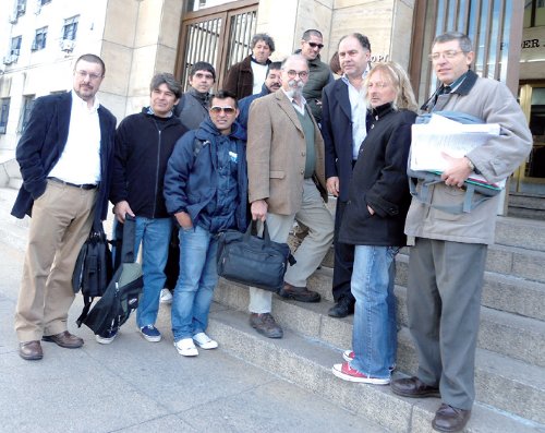 Los ferroviarios encabezados por los dirigentes del Cuerpo de Delegados del Sarmiento Rubén “Pollo” Sobrero, Edgardo Reynoso y Mónica Schlotthauer, junto a dirigentes de distintas organizaciones (foto), presentaron este martes ante el fiscal Federico Delgado y el juez Claudio Bonadio, miles de firmas de usuarios y trabajadores plasmadas en un petitorio exigiendo: “Castigo a los verdaderos responsables, que se vaya TBA y reestatización de los trenes bajo control, gestión y administración de sus trabajadores y usuarios”. Edgardo Reynoso, a su vez, prestó declaración ante el fiscal, haciendo entrega de todas las denuncias que vino haciendo en estos años el Cuerpo de Delegados del Sarmiento. Los compañeros fueron acompañados por trabajadores ferroviarios de otros ramales y dirigentes políticos y sindicales. El abogado y miembro de Izquierda Socialista Juan Carlos Giordano, Mario Cafiero de Proyecto Sur, la CCC y representantes de la Comisión Salvemos al Tren, entre otros. |