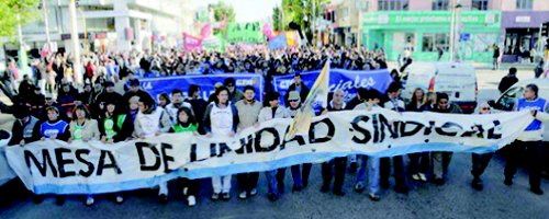 La respuesta de docentes y trabajadores estatales a la política de ajuste del gobernador Peralta es cada día más contundente. Según explican los compañeros de la Comisión Directiva de ADOSAC Pico Truncado “el 12 de abril se llevó a cabo el primer paro convocado por la Mesa de Unidad Sindical. Fue un paro importante, con presencia de todos los sectores en las calles. Nuestro sector paró masivamente en todas las localidades de la provincia, recuperando la intención de lucha en el marco de la unidad con los otros gremios provinciales. Los problemas que debemos enfrentar relacionados con la escuela pública son cada vez más apremiantes: el atraso del pago de los salarios, las irregularidades en el cobro, compañeros que aún no han cobrado su sueldo desde febrero, el quite del aguinaldo, la falta de material didáctico en las escuelas, de insumos para las secretarías y direcciones, las pésimas condiciones edilicias, la falta de aulas y gimnasios, los resultados negativos de los engendros “pedagógicos” llevados a cabo por el CPE a través de acuerdos y circulares unilaterales del 2011, y la falta de decisión de una política educativa acorde a la realidad de la escuela y del contexto social en que ésta debe hoy desarrollarse. A todo esto le sumamos la problemática que nos ha impulsado a aunar criterios de organización y lucha con los otros sectores del trabajo de la administración pública: la amenaza de la reforma previsional, la falta de prestaciones de la Caja de Servicios Sociales, la ausencia de una política de salud pública que esté al servicio del pueblo, el aumento del valor de la canasta familiar, el congelamiento salarial y el temor a cobrar cada vez más tarde. Teniendo en cuenta esta realidad económica y social de la provincia y sin avizorar una política clara desde quienes nos gobiernan para dar soluciones a corto y largo plazo, es que estamos convencidos que debemos profundizar el debate sobre temas relacionados con la economía, los recursos naturales, la educación y la salud en el contexto del próximo Plenario de Trabajadores al que prontamente convocará la Mesa de Unidad Sindical, como así también la posibilidad de darle continuidad a un plan de lucha en reclamo y defensa de nuestros derechos.” El 10 de mayo, en el marco de rechazar la medida de Peralta de pagar el salario sólo a quienes cobraban menos de $9000 (en bruto) la respuesta fue otro paro y cacerolazos en toda la provincia, hasta en las ciudades más pequeñas. “Los trabajadores estatales de Santa Cruz estamos decididos a defender nuestro salario y a exigir el pago del mismo en tiempo y forma. La jornada de lucha y protesta organizada por la MUS para el jueves 10 de mayo fue contundente en cuanto a la adhesión al paro y a la movilización en las calles en las distintas localidades de la provincia. El alto acatamiento al paro del sector docente (más del 80%), la continuidad de las medidas de acción directa en Judiciales, ATE salud, Luz y Fuerza, indican la decisión contundente de no permitir que las consecuencias del vaciamiento, de la corrupción, de la falta de políticas a favor del pueblo en educación y salud por parte del FPV recaigan en los trabajadores. No hay respuestas por parte del gobierno provincial a nuestros reclamos. El camino sigue siendo el mismo: UNIDAD Y MOVILIZACIÓN” Desde Izquierda Socialista damos pleno apoyo a la lucha de los trabajadores de Santa Cruz. ¡Que la crisis no la paguen los trabajadores, sino los funcionarios y multinacionales que la hicieron! ¡Que se nacionalice el 100% de YPF y demás empresas que controlan el gas y petróleo y con eso que se garantice el pago en tiempo y forma y el aumento salarial que se reclama! |
