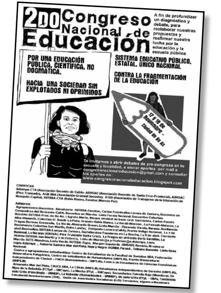 Lo convocan cuatro sindicatos, Ademys (Capital), Adosac (Santa Cruz), AGD (UBA) y Aten (Neuquén); cuatro seccionales de Suteba (Bahía Blanca, Escobar, Marcos Paz y La Plata-legítimo-) y Adosac Pico Truncado. Adhieren más de 40 agrupaciones docentes, 20 estudiantiles, organizaciones sociales y partidos políticos, entre ellos Izquierda Socialista. También están invitados dirigentes docentes internacionales, como el de los maestros rurales de Bolivia, el compañero Emilio Mamani. Ya están participando en las comisiones de debate compañeros de todo el país a través del blog congresonacionaleducacion.blogspot. com.ar. Además de debatir entre docentes, estudiantes y trabajadores sobre la crisis del sistema educativo y propuestas alternativas, sobre las conducciones sindicales y la necesidad de nuevos dirigentes democráticos y de lucha, el congreso probablemente resuelva acciones y campañas comunes para enfrentar la política kirchnerista para la educación. Le solicitamos a Laura Marrone, dirigente de Ademys (CABA), de Docentes en Marcha y una de las principales organizadoras del Congreso, que nos cuente su visión sobre el mismo. Esto nos dijo: “Hace seis años, en ocasión de los debates por la nueva Ley de Educación Nacional (2006) que impulsó el kirchnerismo, realizamos el Primer Congreso Nacional de Educación que nucleó a la mayoría de sindicatos y agrupaciones docentes y estudiantiles que no acordaban con la propuesta del gobierno de Kirchner y de Ctera. Analizábamos que, en esencia, la nueva ley era continuidad de la anterior, la Ley Federal del menemismo, por lo que decíamos que “la Reforma contraatacaba. Diagnosticamos que sufríamos un proceso de privatizaciónfragmentación de la educación, de la escuela y de la producción misma del conocimiento. “A seis años, una parte de los originales convocantes y nuevos sectores que se sumaron consideramos necesario realizar un balance de la política educativa de la última década con el propósito de reafirmar, cambiar o ajustar nuestras propuestas. Compartimos el diagnóstico de que los problemas centrales siguen vigentes. “Quienes todos los días trabajamos en defensa de la escuela y la educación como públicas, es decir, quienes nos oponemos a toda forma de privatización haciendo nuestra la lucha por el derecho a la educación de todos, necesitamos un espacio de debate común. La burocratización de Ctera en los últimos 25 años destruyó toda instancia nacional común, no sólo de lucha, sino de debate sobre políticas educativas, de condiciones laborales docentes. El Primer Congreso fue un esfuerzo productivo que nos rearmó en el análisis y nos permitió procesar políticas en común. Luego no le dimos continuidad. Este nuevo Congreso es una ocasión para revitalizar esos espacios, procesar experiencias, comprender la realidad nacional que cada uno desde su provincia o jurisdicción no alcanza a dimensionar, elaborar propuestas que revitalicen nuestro programa. Y reimpulsar una fuerte campaña nacional que clarifique sobre el verdadero estado de la escuela pública y enfrente la política privatista gubernamental, para que la educación pública digna sea un derecho de todos”. |