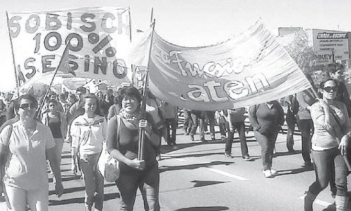 Al cierre de esta edición estamos transitando el paro que comenzamos el 25 de febrero y tiene continuidad hasta la fecha. En el marco de este plan de lucha llegamos al 4 de abril, día en que se cumplieron los seis años del fusilamiento público de nuestro compañero Carlos Fuentealba, que conmocionó al pueblo argentino y repercutió en el mundo. Generando un repudio de los trabajadores a nivel nacional e internacional contra el ex gobernador Sobisch, quien se jactó de haber dado la orden de la represión contra los docentes que manifestábamos en la ruta provincial. La marcha recordando el asesinato contó con la presencia de más de 12.000 personas, mostrando una gran combatividad y exigiendo juicio y castigo para todos los responsables materiales y políticos del fusilamiento y de la represión. Marchamos denunciando que Sobisch goza de la impunidad que le brinda la protección de Sapag, actual gobernador y fiel discípulo de su protegido en cuanto a la negativa de dar respuesta a los trabajadores de la educación. Marchamos con fuerza porque es el mejor homenaje para Carlos en el marco de un plan de lucha, el mismo que él protagonizaba en 2007. Y porque para los docentes y la comunidad, Carlos vive en cada reclamo, en cada escuela, en cada aula. Cuando las tizas se mancharon con sangre, nada fue igual. ¡Nunca más! También se destacó la presencia de muchas delegaciones de sindicatos docentes provinciales, entre ellos la de Jorge Adaro en representación de Ademys, sindicato que ya había enviado un importante aporte al fondo de huelga. La gran ausente, fue, una vez más, Ctera, que más que como central nacional docente, actúa como ministerio del gobierno. Igual que en 2007, sin respuesta y con represión La continuidad del paro recae sobre las espaldas de cientos de activistas que impulsamos la mayoría de las actividades votadas en las asambleas, pero que aún no logramos arrancarle una propuesta favorable a un gobierno que demuestra día a día que no le interesa nada de la escuela pública y que mantiene una dureza tremenda ante nuestra lucha. Al igual que Cristina, el gobernador no da respuesta al reclamo salarial, ni al resto del pliego que venimos exigiendo desde el año pasado. La actualidad del paro muestra la firmeza de una vanguardia numerosa, combativa y sacrificada pero muy sola en la lucha, ya que la base aplica las medidas muy parcialmente, como si hubiera dos planes de lucha, uno de los activistas y otro de la masa docente. Realidad a la que llegamos porque el paro por tiempo indeterminado impulsado por la dirigencia no fue, para nosotros, la mejor medida, ya que ante la dureza del gobierno y los descuentos que descalabraron la economía de los trabajadores, se perdía masividad. Justamente, la modalidad de inicio del plan de lucha fue una de las grandes diferencias que planteamos en la primera asamblea antes del comienzo del ciclo lectivo, cuando propusimos un plan de lucha progresivo para garantizar masividad y tener un diálogo con la comunidad desde la escuela en medio de las medidas, dos condiciones básicas para enfrentar con más posibilidades al gobierno. Condiciones que no se cumplieron por el carácter indeterminado del plan de lucha impulsado por la dirigencia provincial y seccional del FURA. Sumado a esto, el aislamiento “cantado” al que íbamos, ya que ATE y la CTA habían firmado el aumento que nosotros rechazamos y nos fue impuesto por decreto. El plan de lucha viene transcurriendo con reuniones intrascendentes con el gobierno y con una serie de medidas de acción de la vanguardia, como cortes de puentes y marchas, que no cambian el curso del conflicto. Y el cobro de los sueldos con descuentos masivos en los primeros días de abril muestran otra grave falencia de la conducción, que no impulsa la formación de un fondo de huelga nacional, como fue propuesto por nuestra agrupación Fucsia y votado en asambleas, pero nunca instrumentado. La adhesión muy parcial de las medidas de fuerza por parte de la base docente y la incapacidad de la conducción del FURA en dar tareas y acciones para la propia vanguardia que lleva 40 días de paro, lleva a que al cierre de esta edición se produzcan corte de rutas impulsados por seccionales del interior, por fuera de la conducción provincial. Acciones que el FURA tendría que encabezar. Hay que recuperar la unidad del gremio. Para eso la dirigencia del FURA tiene que retomar la consulta a la base y abrir los caminos para que sean los docentes los que decidan los pasos a dar, devolviéndoles el protagonismo con recorrida de escuelas y con asambleas convocadas en horarios apropiados para que puedan concurrir no solo los activistas, sino también aquellos docentes que cumplen muy parcialmente el plan de lucha. Y como siempre, desde ATEN, también nos solidarizamos con los docentes de Chaco, que siguen en lucha y sufrieron la represión del gobernador kirchnerista, y con los docentes de Catamarca y Santiago -también en lucha-, que junto a los de Santa Cruz, Buenos Aires y otras provincias en reclamo salarial, constituyen un panorama nacional de luchas docentes totalmente ignoradas y ninguneadas, una vez más, por Ctera, a la que le exigimos que rompa el pacto con el gobierno y convoque a un paro nacional para que triunfen. |
