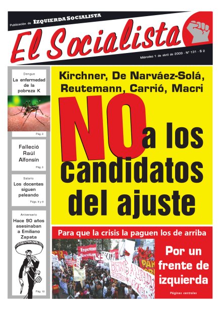 Izquierda Socialista en Internet: www.izquierdasocialista.org.ar - www.nahuelmoreno.org - www.uit-ci.org El Socialista Registro de propiedad intelectual: Nº 596282. Director: Juan Carlos Giordano. Hipólito Yrigoyen 1115 Capital Federal opinaellector@izquierdasocialista.org.ar - Tel.:(+54) 11-4381-4240